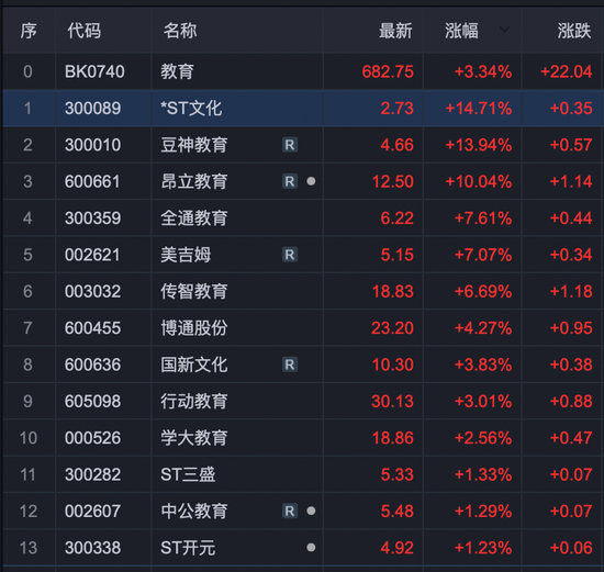 相对而言,今天表现最好的,却是教育股板块。其中,豆神教育涨近14%,昂立教育、全通教育大涨超10%。教育ETF(513360)今日大涨4.72%,创出近一年多来的新高。