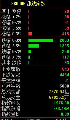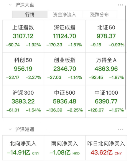 两市共543只个股上涨,仅4464只个股下跌,北向资金净卖出近15亿元。