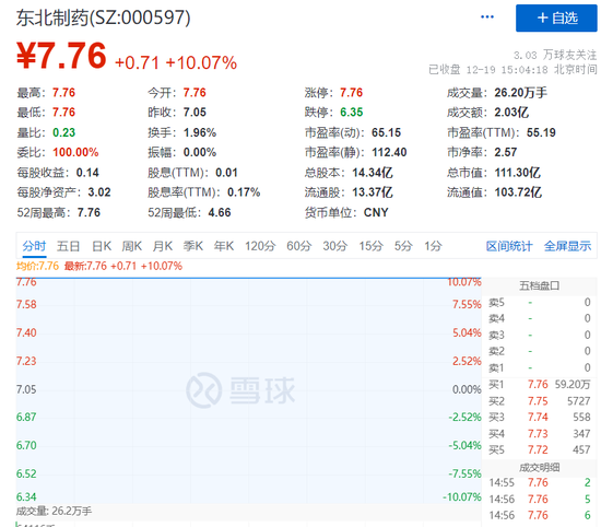 而东北制药涨停,该公司20片的扑热息痛退烧药仅售2元。