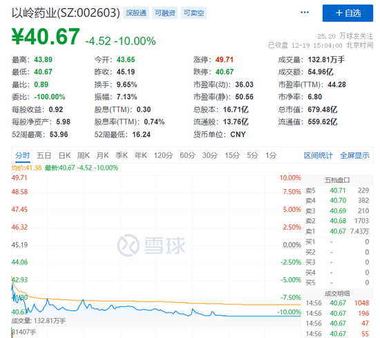 生产连花清瘟的以岭药业跌停。