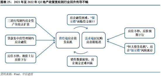 2)项目交付、债务违约等问题加剧了本轮地产下行。对于本轮地产的下行期,市场在一开始的时候是低估的,因为2005年来的地产周期中从来没有出现过地产债务危机,因此一般看到地产政策基调转松之后市场就可以合理预期后续商品房销售、房价预期相继企稳,这也是今年年初地产行情的逻辑。但是进入二季度后不但看不到商品房销售回暖、房价预期改善,反而迎来的是地产项目交付问题,地产公司债务违约担忧,直到岁末地产三支箭相继发射后,地产当前的资金链问题才出现较为显著的改善。