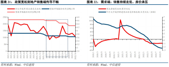 1)地产第三支箭后,目前市场对于地产政策的大部分预期都已经兑现,因此整体后续地产线索的逻辑链条可能是:地产需求端政策刺激-商品房保交楼问题解决-地产供给端融资政策放开-地产供给端资金问题担忧缓解-居民对地产销售信心回暖-地产销售数据走好-地产开发商资金回笼资金链问题消除-地产新开工和投资跟进-地产产业链需求修复。过去几轮地产周期来看,每轮地产再融资政策落地后到地产销售、房价预期的确定性回暖大约在3-6个月左右,考虑到本轮地产债务压力仍然需要时间彻底解决,因此可能本轮修复的时滞或较长,因此景气修复的验证可能至少6个月左右。在这个阶段下除非地产政策进一步超预期,如一线城市放开限购等,否则地产修复的逻辑链条或有反复。
