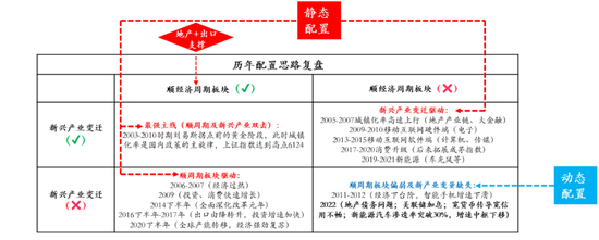 ●此前适合抱团静态配置的环境已经渐行渐远,投资者难以形成反复超预期验证、拓展的逻辑链条。就行情演绎的过程来看,任何级别的行情在初期时实际上都只是一个逻辑而已,只要具备投资者预期就足以形成短期热点,而短期热点如果得到后续进一步政策、事件或数据的验证就可以演化成主题性机会,也即我们今年看到的诸如新旧能源、地产景气修复、上海疫后修复等线索,但要想进一步产生适合持续抱团的行情则需要逻辑被验证后再进一步拓展并反复超预期,回顾2005年来的A股历史,只有地产出口共振下的顺周期板块和以产业变迁为主导的景气赛道才可能构成这样的效果。今年在中美周期错位以及泛新能源景气赛道的增速高点逐步确认的背景下,大部分有可能演绎成主线的逻辑都在刚刚形成主题性机会的时候夭折了,构不成反复超预期验证、拓展的逻辑链条。