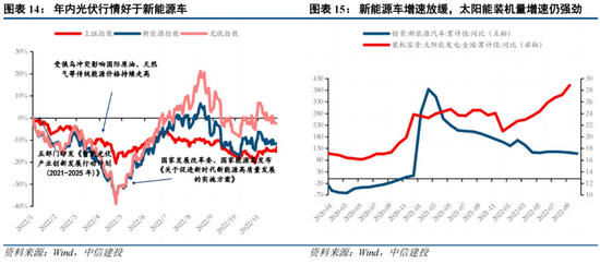 1)旧景气赛道中主导的新能源车、光伏等已经相对明确地走过增速拐点,从过去的普涨转向精选个股,估值逻辑也将逐步从PEG切向PE,而其衍生赛道如储能、风电等尚未完全走过增速拐点,因此后续若这些衍生赛道超预期则可能反复上演主题性机会,类似于今年年中的景气中小盘行情,但相对难直接拓展出主线行情逻辑链条;