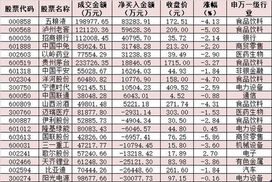 表:12月20日沪、深股通前十大成交活跃股交易情况