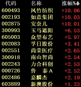 抗病毒面料板块中,凤竹纺织、如意集团、安奈儿等多股涨停。
