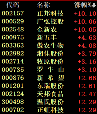 猪肉板块也大涨,正邦科技、金新农(维权)等个股涨停。