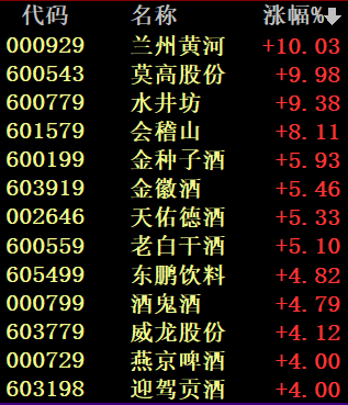 饮料制造板块大爆发,兰州黄河、莫高股份涨停。