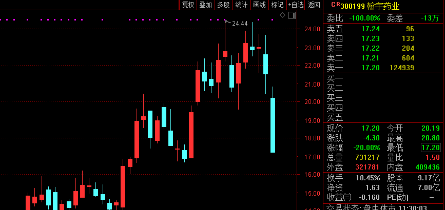 防疫概念股受此影响应声大跌。熊去氧胆酸板块盘中放量重挫逾5%,创该板块指数推出以来历史最低,半日成交接近昨日全天成交,上海凯宝、广生堂、众生药业等跌停或跌超10%;新冠药概念亦放量大跌超4%,翰宇药业20%跌停,舒泰神、前沿生物、新华制药等逾10股跌停或跌超10%。新冠检测、生物疫苗、口罩防护等板块均跌幅居前,美诺华等跌停。
