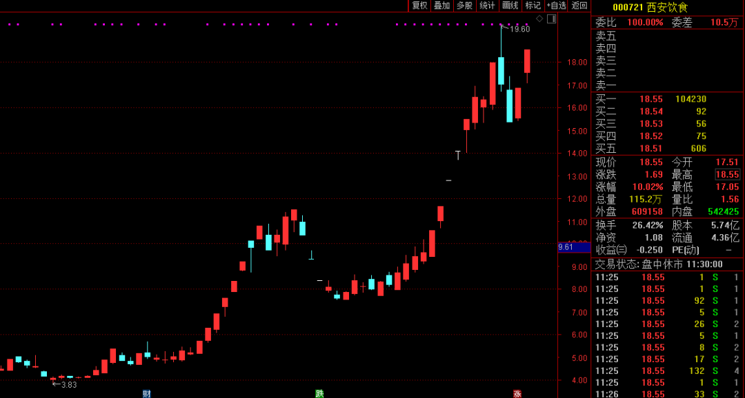 盘面上,POE胶膜、银行、保险、酿酒等板块涨幅居前,防疫概念再度全线下挫,熊去氧胆酸、新冠检测、新冠药、生物疫苗等板块跌幅居前。餐饮、零售板块继续飙涨,西安饮食、西安旅游、人人乐、中兴商业、华联股份(维权)等多股涨停。其中的西安饮食,从今年10月中旬开始算起,涨幅已超过300%。