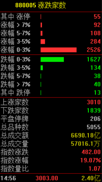 今天港股继续休市,三大指数今日高开高走,午后均涨超1%,沪指逼近3100点关口。截止收盘沪指涨0.98%,深成指涨1.16%,创业板指涨1.2%。两市共3010只个股上涨,1839只个股下跌。
