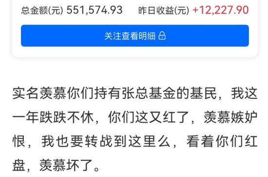 有基民表示:“我始终看好张坤的基金,他给人以希望,加油!”