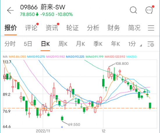受挫非止一家,因交付不及预期,新能源车蔚来股价跳空低开,收盘跌逾10%。