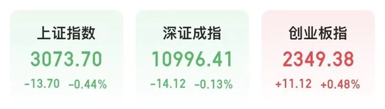 12月29日,A股三大指数走势分化。沪指全天弱势震荡,收跌0.44%,深成指跌0.13%,创业板指涨0.48%。