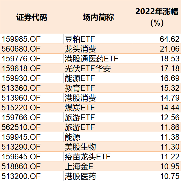 2022年收官之日,两市股指维持红盘报收,但纵观全年,A股主要股指均收跌。而随着今日交易结束,2022年基金业绩排名也尘埃落定,场内ETF成绩率先出炉。