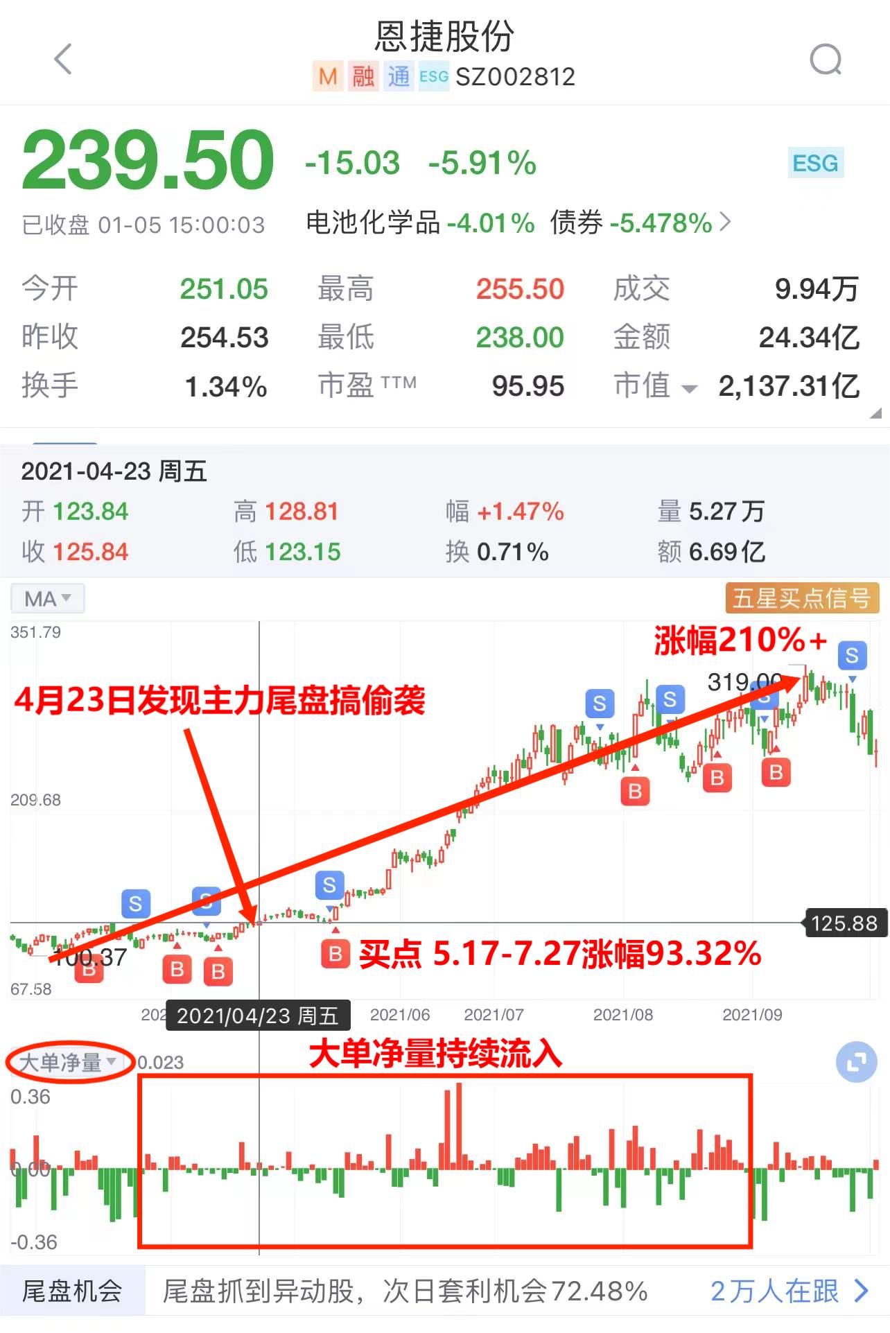 5月17日和7月27日,B/S点也发出了提示信号,恩捷股份从126.73元涨至245元,区间涨幅为93.32%。