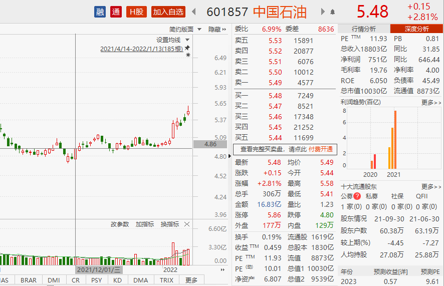 利好消息公布后,中国石油今天逆势大涨了2.81%,中国石化也上涨了1.16%。