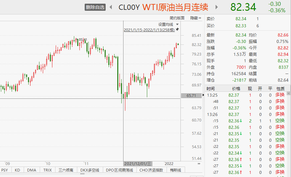 近期,因为欧佩克+坚持逐月增产计划,美国原油库存连续6周下降等利好消息提振市场,原油一度呈现四连涨走势。此外,对奥密克戎新冠病毒变异体影响需求的担忧减缓,对供应担忧加剧,欧美原油期货涨至两个月来高点。