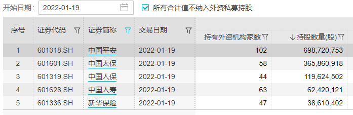 同时,外资开年也在“扫货”保险股。截至1月19日,外资对中国平安、中国太保、中国人保、中国人寿、新华保险的持股量较2021年12月31日收盘时的持股量分别增加2.72%、4.03%、21.17%、5.46%、7.41%。
