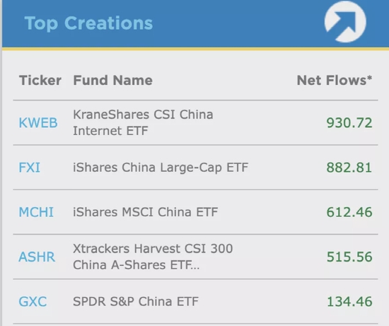 根据ETF网站(ETF.com)统计,过去一个月以来吸金最多的5只中国ETF合计吸金30.76亿美元约折合195亿元人民币。目前美国上市中国ETF,总共313.6亿美元,折合1995亿元人民币。5只中国ETF一个月的吸金量,约为美国上市中国ETF总规模的10%。