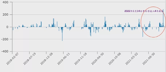 我们以跟踪沪深300指数的ASHR为例。进入2021 年9月以来,资金流入ASHR的幅度明显加大。到了2022年1月14日,ASHR一天竟吸收了2.92亿美元,创它自己四年多以来的单日净流入新高。