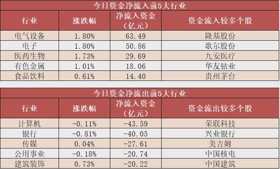 28个申万一级行业中,电气设备行业净流入63.49亿元居首。