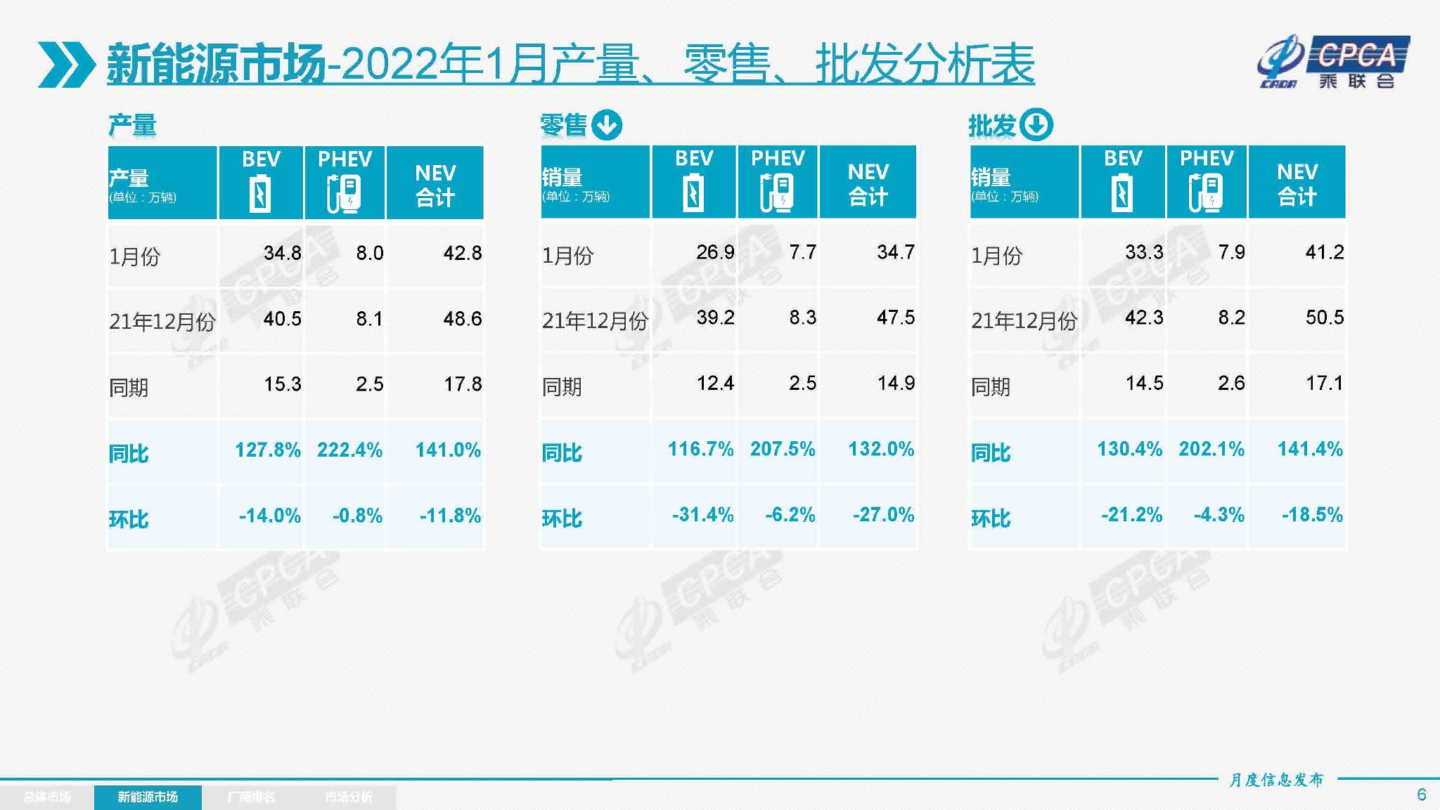 国内:1月新能源乘用车批发销量达到41.2万辆,同比增长141.4%,环比下降18.5%,环比降幅与2021年1月特征一致。1月新能源乘用车零售销量达到34.7万辆,同比增长132.0%,环比下降27.0%,环比降幅与2021年1月的25%特征基本一致。