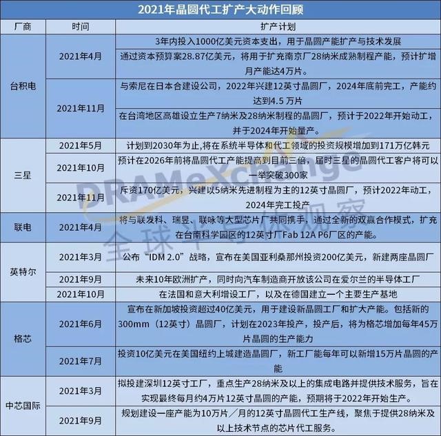 在严重缺芯的情况下,2021年全球各大晶圆厂都在大力扩产。