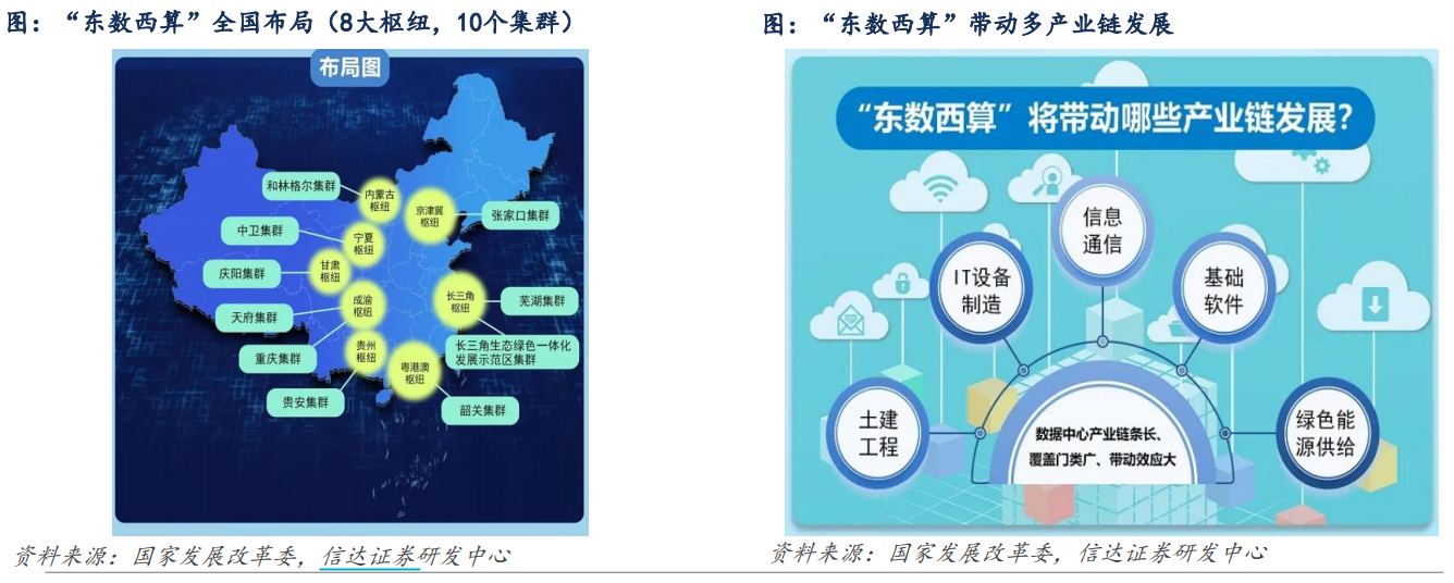 2月17日,国家发改委联合多部门印发文件,同意在京津冀、长三角、粤港澳大湾区、成渝、内蒙古、贵州、甘肃、宁夏等8地启动国家算力枢纽节点建设,同时在算力枢纽内进一步规划设立10个国家数据中心集群,具体承担大型/超大型数据中心建设,标志着“东数西算”工程正式启动。