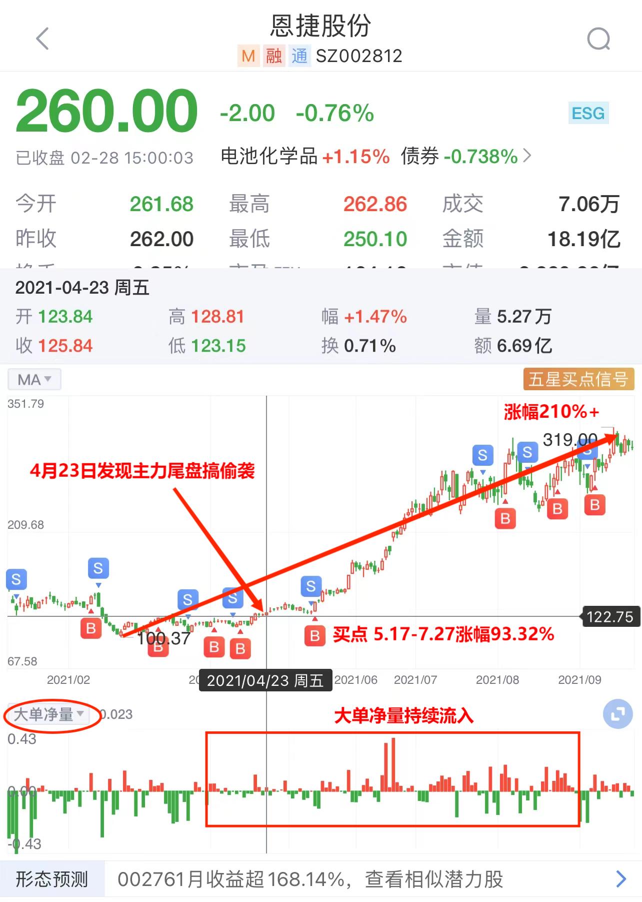 5月17日和7月27日,B/S点也发出了提示信号,恩捷股份从126.73元涨至245元,区间涨幅为93.32%。