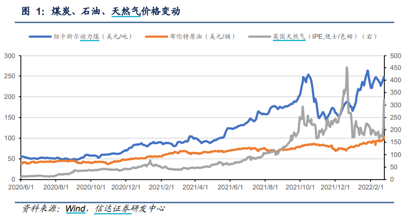 信达证券指出,由于显著的比价优势,单位发热量的价格煤炭显著低于油气,可预期的油气价格上升有望使全球能源消费向煤炭倾斜,而俄罗斯的煤炭受制于铁路港口等基础设施建设滞后问题,很大程度上不会很快流转到国际煤炭市场,从而加剧全球煤炭供需矛盾,带动国际煤炭价格上涨。在 24 日发改委新发布的煤炭市场价格形成机制中,明确了秦皇岛下水煤 5500 大卡中长期交易价格合理运行区间在 570-770 元/吨,与 17-21 年实施的长协价格 500-570 元/吨相比,此前的上限变为现在的下限,煤炭价格中枢确定性上升。因此国际煤价上涨,国内煤价趋于高位,可能引发价格倒挂,对海外煤炭的需求转移至国内。去年煤炭价格大幅震荡,在稳价保供的政策推动下,供需矛盾在去年底阶段性有所缓和,但行业产能周期错配的问题仍没有改变,在需求端继续增加,供给端弹性很小的情况下,煤价易涨难跌,保持高位震荡后再上行将是大趋势,行业景气周期将持续向好。