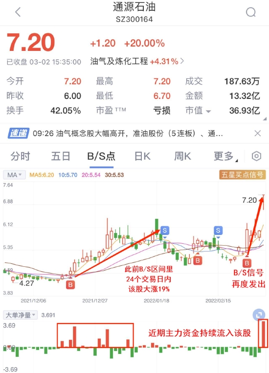 以今日大涨的通源石油为例,通过查股网Level-2的大单净量发现,此前 ,主力资金持续流入该股,此前,B/S点区间内该股一度大涨19%,近期,B/S点信号再度发出,主力资金也再度流入,以为着该股近期再获资金关注。