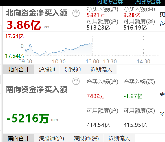午评:北向资金半日净流入3.86亿元 深股通净流入3.28亿元