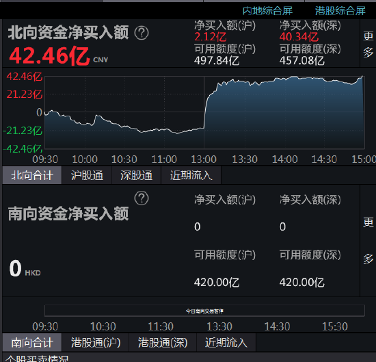 收评:北向净流入42.46亿元,早盘一度净卖出近25亿元