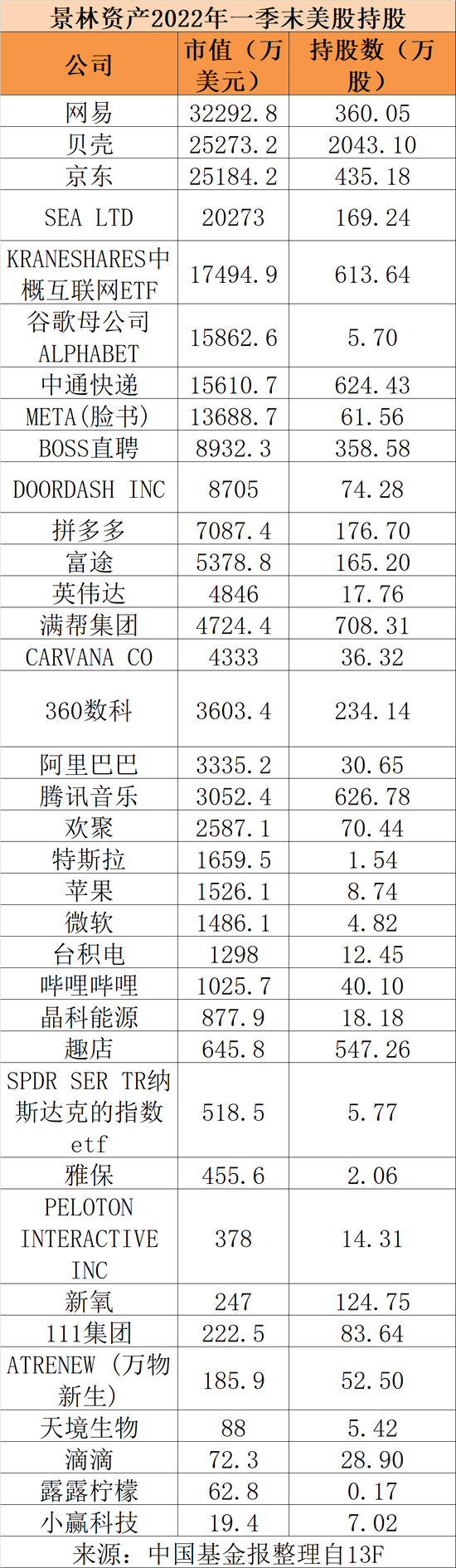 最后,附上景林资产在美股的最新持仓情况: