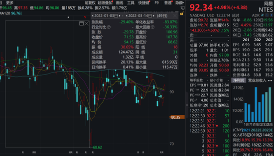 3月中旬,美国证监会(SEC)突然公布的“预退市名单”,不少公司股价几天腰斩。网易也一样,一季度股价一度跌近30%,股价从100美元附近最低跌至68美元。随后不断企稳反弹。截至记者发稿,股价已经回到90美元上方。