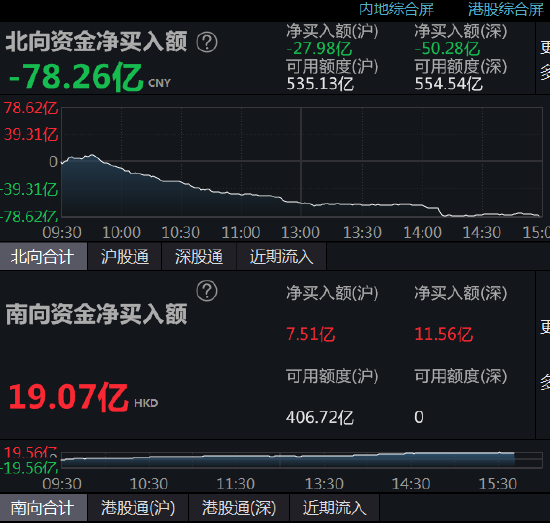 收评:北向资金净卖出78.26亿元 沪股通净卖出27.98亿元