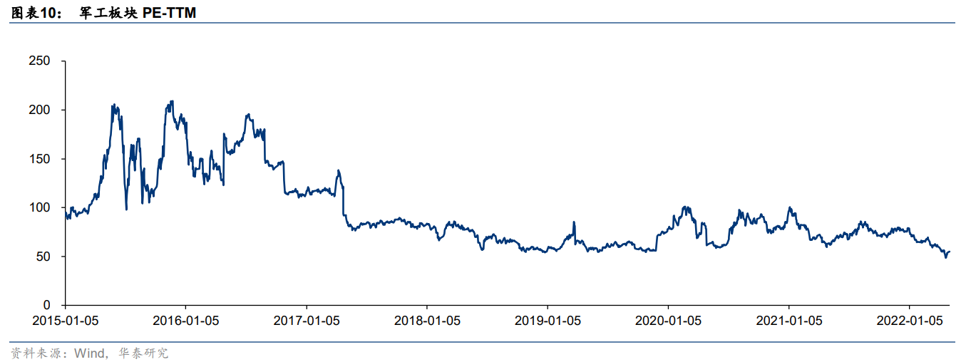 3.“十四五”价值成长驱动期(2021-至今):“十四五”规划军工发展新周期;“十三五”列装落地,企业业绩释放;板块证券化提升,龙头盈利指引逐步清晰。2020-2021年军工板块投资逻辑及实际驱动因素已转变为业绩驱动,特别在2020年下半年,军工行业迎来了业绩与估值双增长下的“戴维斯双击”,2022年国内疫情反复冲击市场风险偏好,军工板块持续杀估值。