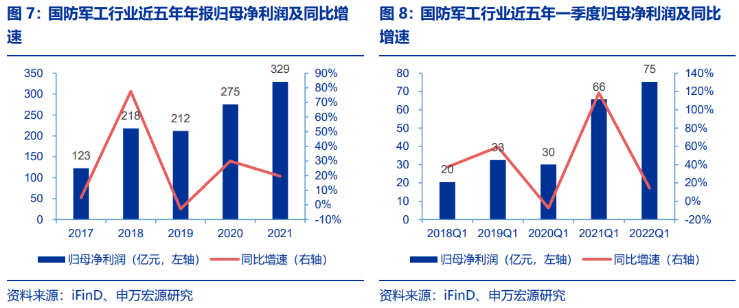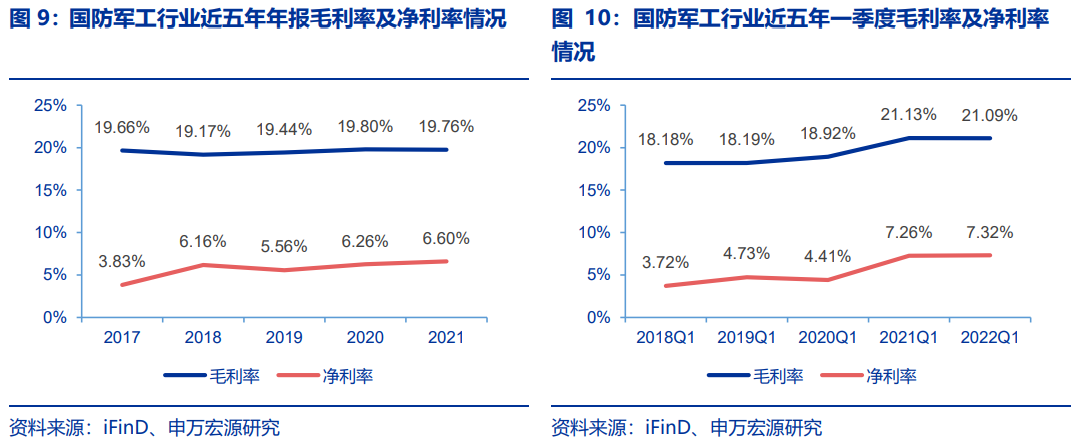 从2021年及2022年一季度的业绩情况来看,军工行业的业绩稳步兑现,盈利能力也正在持续改善。