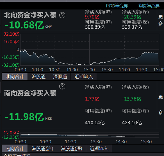 收评:北向资金净卖出10.68亿元,早盘一度净卖出超32亿元