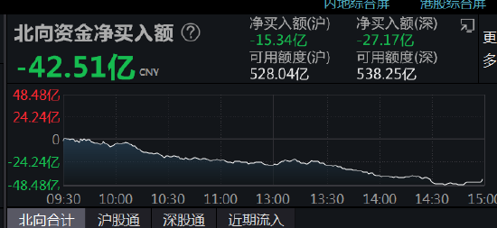 收评:北向资金净卖出42.51亿元 沪股通净卖出15.34亿