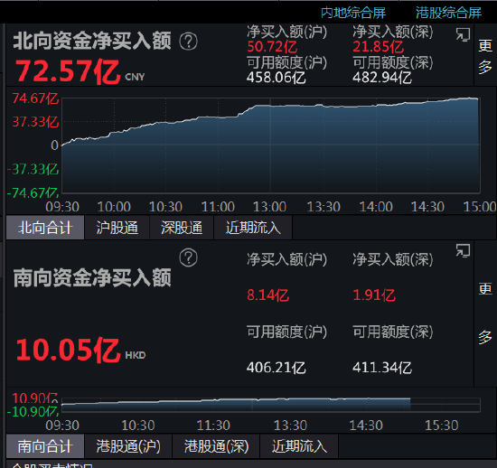 收评:北向资金净买入72.57亿元 沪股通净买入50.72亿元