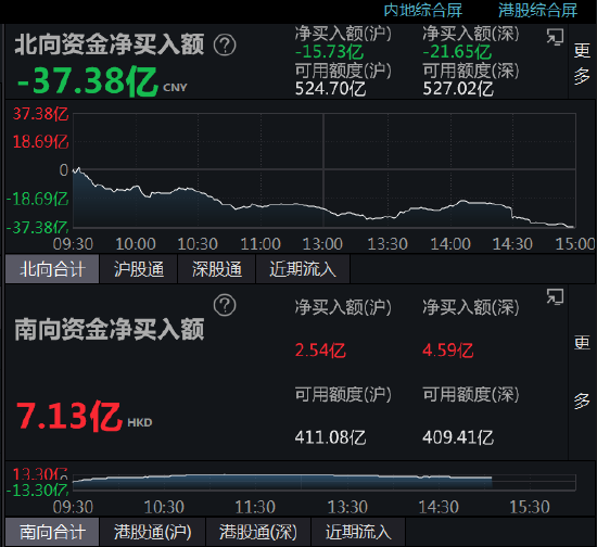收评:北向资金净卖出37.38亿元 上个交易日大幅净买入逾72亿元