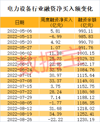 数据宝统计,8月22日-8月26日融资客净卖出额最高的便是电力设备行业,净卖出额达到22.22亿元,创近十七周以来净卖出额新高;其次是汽车行业,上周融资净卖出额也在20亿元以上。本周一电力设备行业融资净卖出6.48亿元,同样也是排在首位。