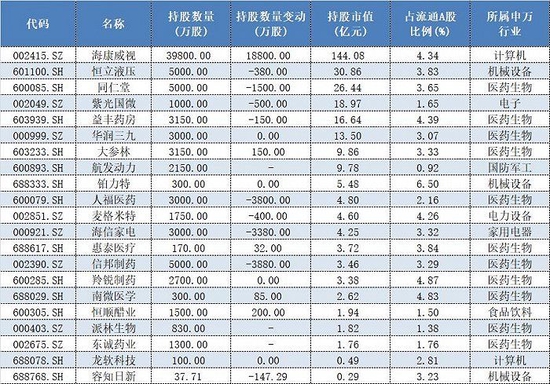 除了海康威视之外,恒立液压(601100.SH)、同仁堂(600085.SH)、紫光国微(002049.SZ)、益丰药房(603939.SH)等中报时被“高毅邻山1号远望1号私募基金”持仓的市值也分别高达30.86亿元、26.44亿元、18.97亿元和16.64亿元,不过与一季度末的持股数量相比,上述个股二季度均遭遇了冯柳的减持。