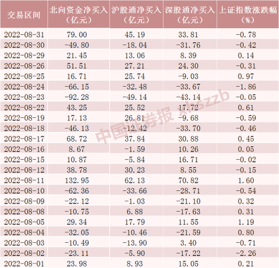 北向资金8月流向情况