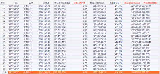 北向资金持股宁德时代明细数据