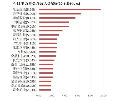 4、隆基绿能主力资金净流入9.52亿元居首