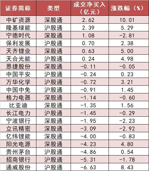 6、今日沪股通和深股通前十大活跃股