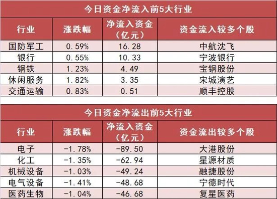 28个申万一级行业中,5个行业实现资金净流入,其中国防军工行业净流入16.28亿元居首。